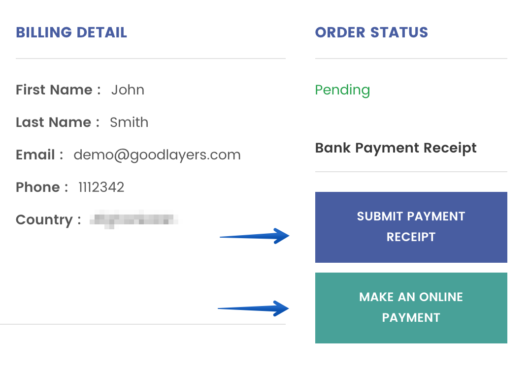 This button allows customers to submit payment receipt after they proceed the bank transfer.